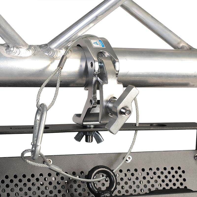 Les lumières fixées à des hauteurs plus élevées doivent avoir un anneau de sécurité et un câble de sécurité pour éviter tout risque de chute.