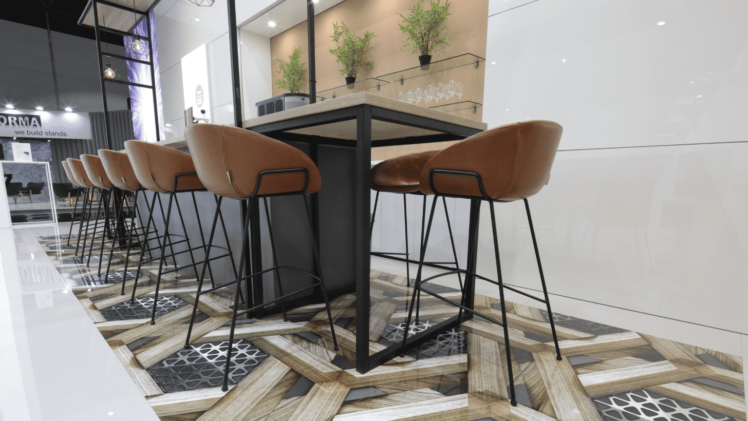 Avec les dalles de sol ExpoFloor, vous créez un sol d’exposition à forte visibilité qui élève la présentation à un niveau supérieur. Il est possible de fournir votre propre visuel à utiliser sur les panneaux de sol. L’image est imprimée en haute résolution sur les dalles. Deux options sont disponibles : Image unique ou Image divisée.