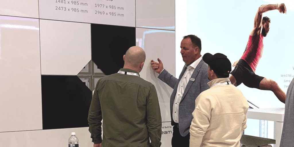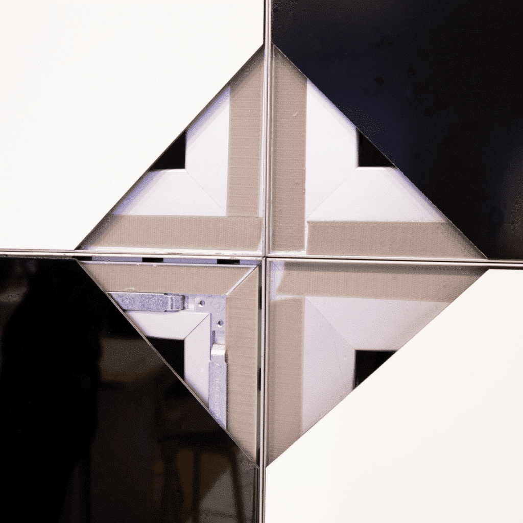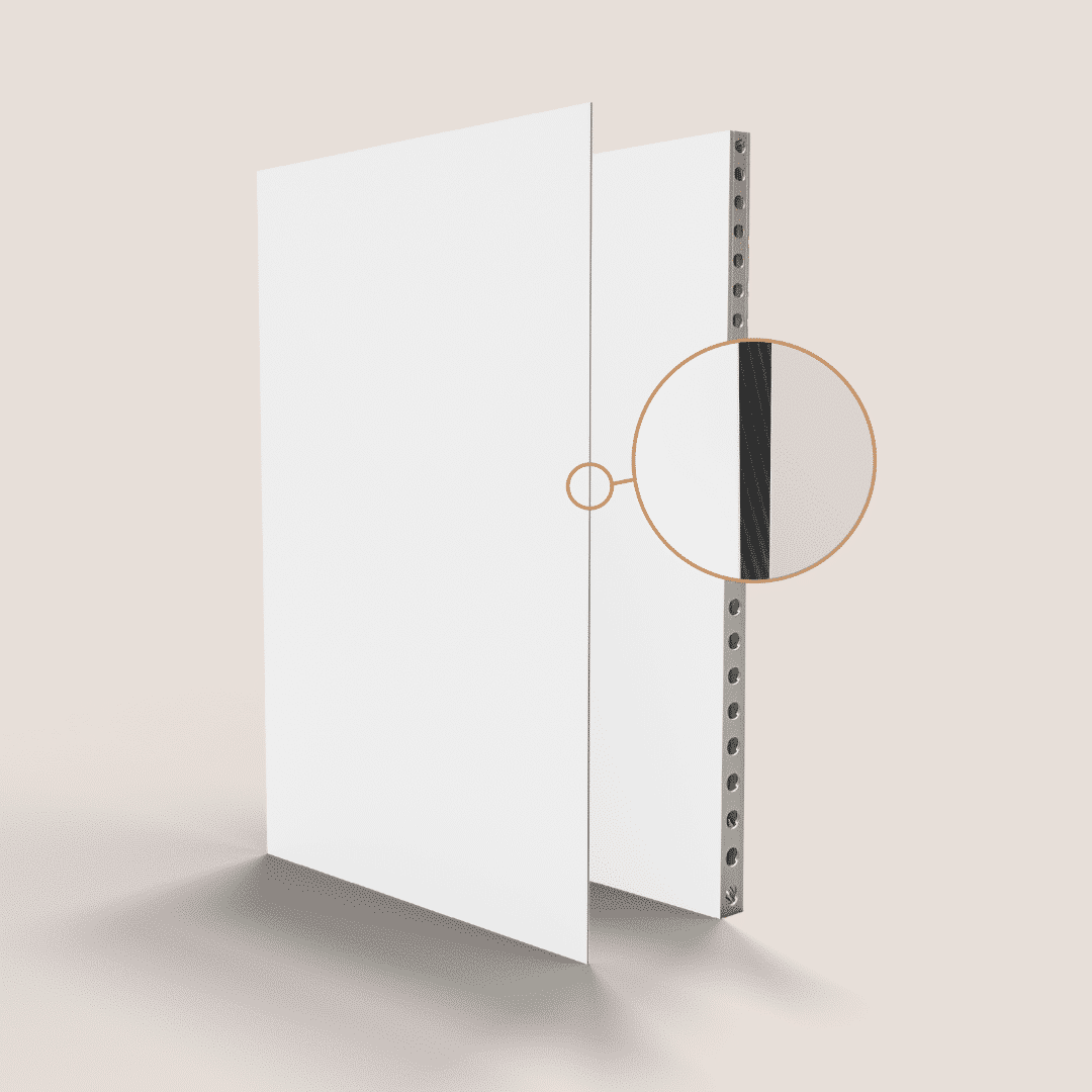 Les panneaux AluPanel sont prédécoupés pour s’adapter aux profilés aluminium Aluvision, beMatrix ou Matrixdecor. Cela signifie aucune perte de coupe et aucun coût de coupe supplémentaire ; les panneaux peuvent être utilisés immédiatement.