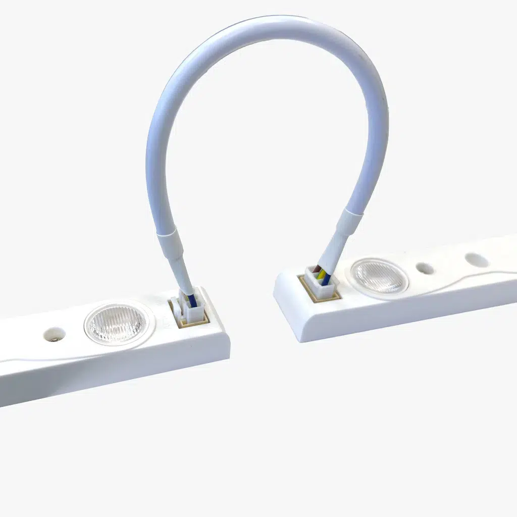 Module edgelit plug-and-play avec adaptateur intégré. Source de lumière puissante pour éclairage périphérique/tangantiel d’un caisson lumineux, pour une installation facile et rapide, sans transformateur externe. L’alimentation directe (AC 100-240V) est fournie par une prise de courant secteur ordinaire. Les modules LONA peuvent être branchés en série à l’aide de câbles de connexion disponibles en différentes longueurs. Ceci permet d’équiper rapidement un caisson lumineux de puissants modules LED.